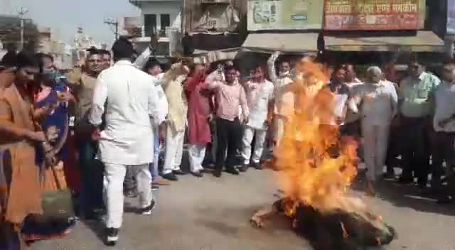 जिला अध्यक्ष भाई चरणसिंह तेवतिया के नेतृत्व में कार्यकर्ताओं ने कमेठी चोक पर पंजाब का मुख्यमंत्री का पुतला फूंका