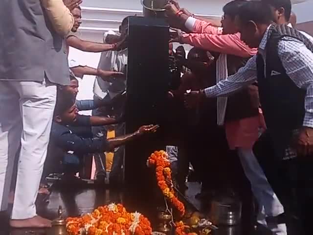 बख्शी का तालाब: श्री सिद्ध पीठ शनिधाम में वार्षिक उत्सव के उपलक्ष में शनिदेव का तेल अभिषेक करते हुए