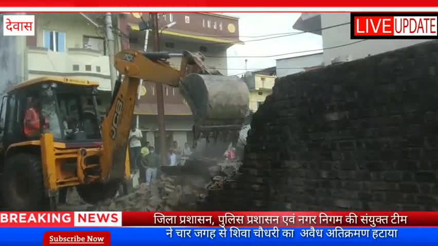 देवास नगर: Dewas news। कांग्रेस नेता शिवा चौधरी के मकानों पर चला प्रसाशन का बुलडोज़र, 4 मकानों को कराया अतिक्रमण मुक्त #dewas