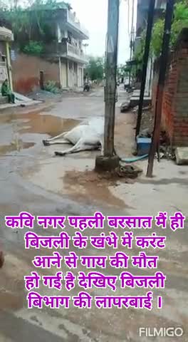 ग्वालियर गिर्द: कबि नगर मैं बिजली के खंभे मैं करंट आने से गाय की की हुई मौत ।