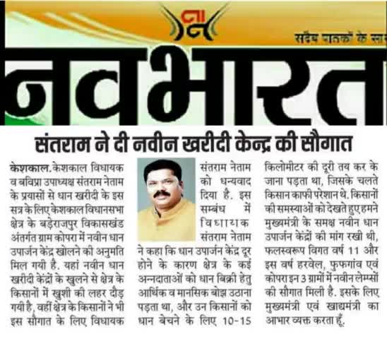 केशकाल विधानसभा के लोकप्रिय विधायक माननीय श्री संतराम नेताम जी ने नवीन धान खरीदी केंद्र की सौगात