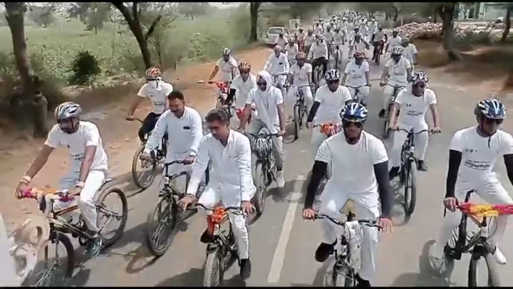 डबवाली: *साइक्लोथान यात्रा - तीसरा दिन* #साइक्लोथान_यात्रा को *डबवाली से सिरसा* के लिए जिलाध्यक्ष भाजपा आदित्य देवीलाल ने हरी झं
