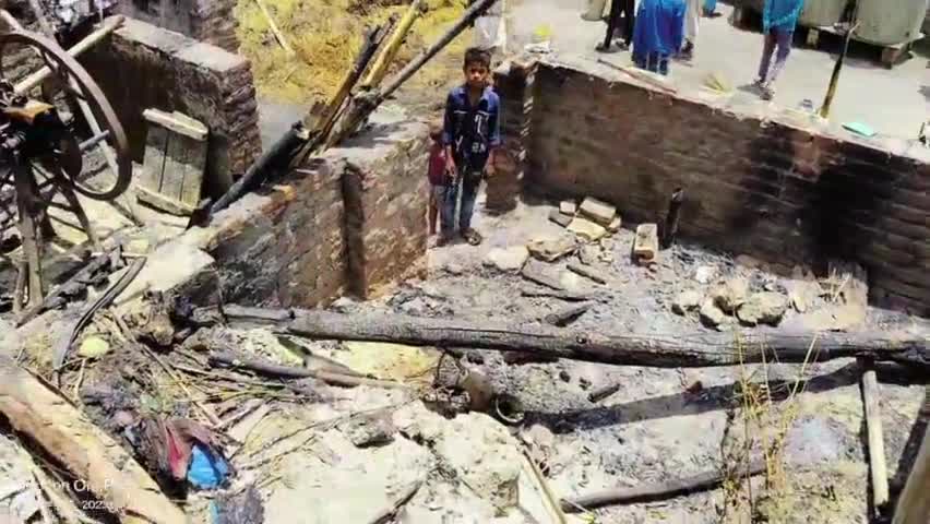 पताही: थाना क्षेत्र के कोदरिया में गैस का रिसाव होने से घर में लगी भयंकर आग