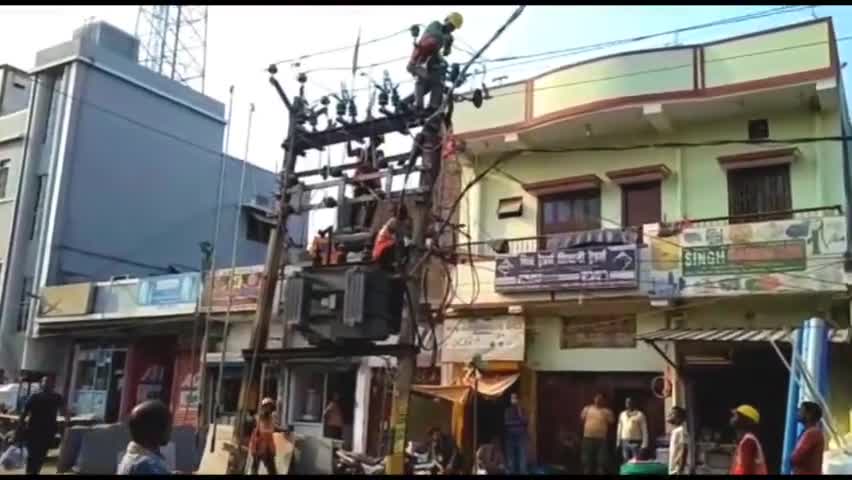 मीरजानहाट शीतला स्थान चौक के समीप पोल पर चढ़ा कर्मचारी उसके बाद पूरा हो गया