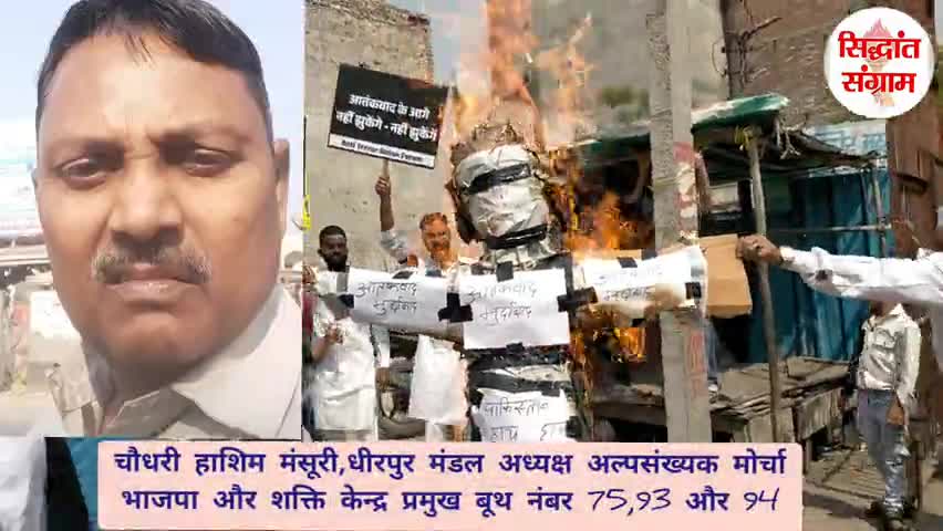 भाजपा अल्पसंख्यक मोर्चा धीरपुर मंडल अध्यक्ष चौधरी हाशिम मंसूरी और अन्य ने आतंकवाद का पुतला दहन किया