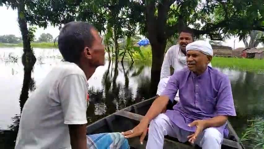 वैशाली: नाव के सहारे वैशाली पं में#बाढ़_पीड़ितों का हाल जानते एवं मदद का भरोसा दिलाते #राजद_प्रखंड_अध्यक्ष रामशीष राय व राजू भाई
