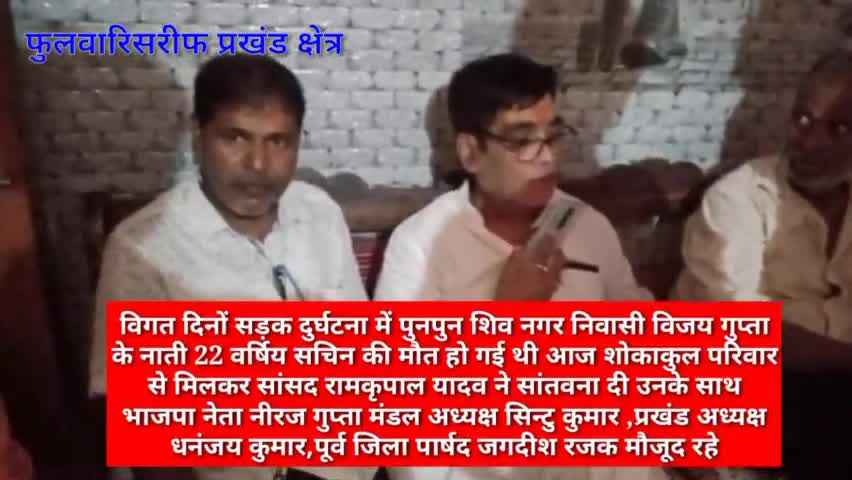फुलवारिसरीफ:विगत दिनों सड़क दुर्घटना में पुनपुन शिव नगर सचिन की मौत होगई थी,सांसद #रामकृपाल यादव परिजनों से मिलने पहुंचे