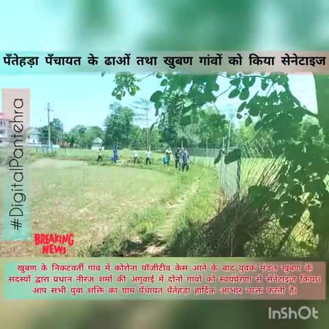 कोरोना पॉजीटीव मामले सामने आने पर पँतेहड़ा पँचायत के खुबण और ढाओं गांवों को सेनेटाइज करते हुए युवक मंडल खुबण के सदस्य।