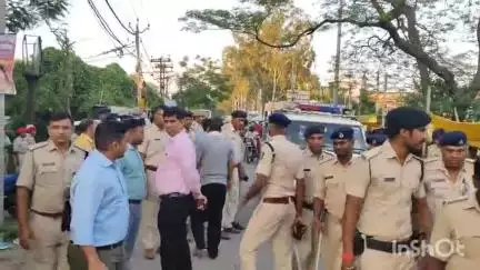 सोमवार की शाम 5 बजे मखदुमपुर बाजार में दुर्गा पूजा को लेकर जिला प्रशासन के निर्देश पर फ्लैग मार्च निकाला गया । थाना परिसर से निकली फ्लैग मार्च पूरे बाजार में पैदल मार्च किया ,इस दौरान लोगों को शांतिपूर्वक पर्व मनाने का निर्देश दिया ।फ्लैग मार्च में जिले के एसडीएम ,एडीएम,डीएसपी समेत कई अधिकारी शामिल रहे ।