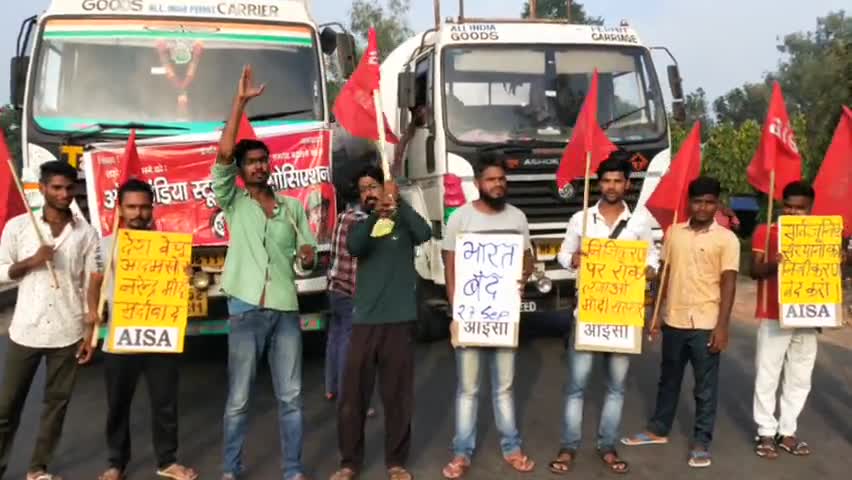 भारत बंद के अवसर पर आइसा द्वारा किया गया बेगूसराय में बंद #bharat_bandh