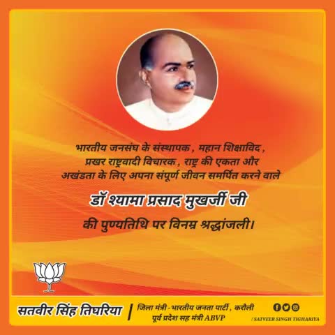 डॉ. श्यामाप्रसाद मुखर्जी जी की पुण्यतिथि पर विनम्र श्रद्धांजलि।
