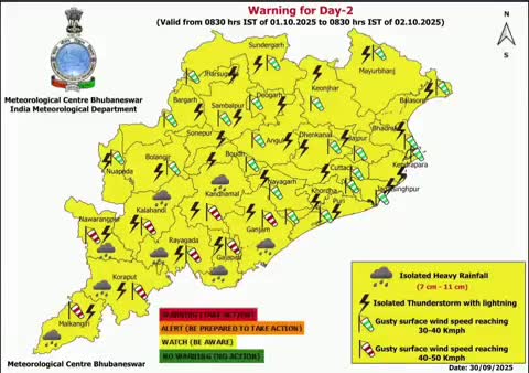 ନୂଆପଡା: ଆସନ୍ତାକାଲି ସକାଳ ୮.୩୦ରୁ ଗୁରୁବାର ସକାଳ ୮.୩୦ ପର୍ଯ୍ୟନ୍ତ ଜିଲ୍ଲାକୁ ୟେଲୋ ୱାର୍ଣ୍ଣିଂ ଜାରି କଲା ପାଣିପାଗ ବିଭାଗ ବର୍ଷାକୁ ଦୃଷ୍ଟିରେ ରଖ