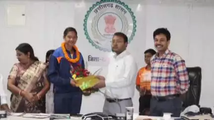 कलेक्टर अमृत विकास तोपनो ने आज मंगलवार को कलेक्ट्रेट सभा कक्ष में समय सीमा की बैठक पश्चात जगदलपुर में आयोजित 25 वें राज्य स्तरीय शालेय खेलकूद प्रतियोगिता में बेहतर प्रदर्शन करने वाले तीन खिलाड़ियो एडविना कांत, विराट धीवर और शोभा सिदार को मिठाई खिलाकर, जनरल नॉलेज की पुस्तक भेंट कर तथा मेडल पहनाकर सम्मानित किया।