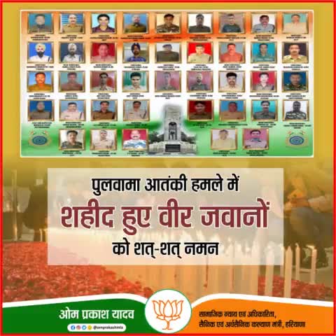 14 फरवरी 2019 को, पुलवामा में सीआरपीएफ जवानों पर हुए कायरतापूर्ण आतंकी हमले में शहीद सभी वीर जवानों को विनम्र श्रद्धांजली एवं नमन। उनके बलिदान को देश नहीं भूलेगा। #PulwamaAttack https://t.co/vx5VYD95ec