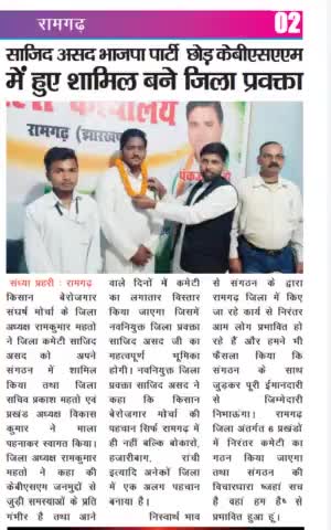 दिनांक 02/04/2022 को किसान बेरोजगार संघर्ष मोर्चा का जिला रामगढ़ प्रवक्ता बने #आपके_लिए_आपका_साजीद