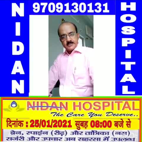 डॉ पी. के. झा ,, न्युरो सर्जन दिल्ली एम्स सहरसा के निदान हाॅस्पिटल सहरसा में 25 जनवरी को आ रहें हैं 9473483908