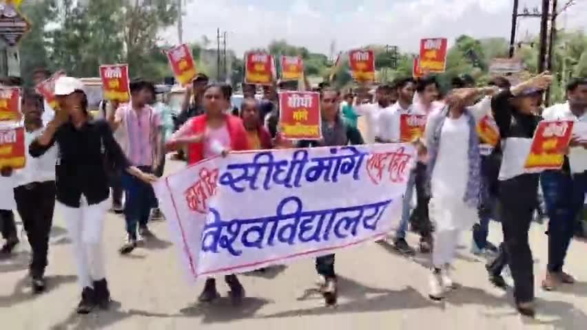 सीधी : जिले में एक बार फिर छात्र -छात्राओं द्वारा पैदल मार्च निकालकर विश्वविद्यालय माँग हेतु सांसद महोदय को ज्ञापन सौंपे