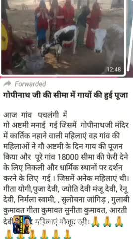 उदयपुरवाटी: आज श्री गोपीनाथजी मंदिर गांव पर पचलंगी मैं गायों की गई पूजा को अष्टमी के दिन गोपीनाथजी मंदिर की सीमा में पूजा अर्चनाकी