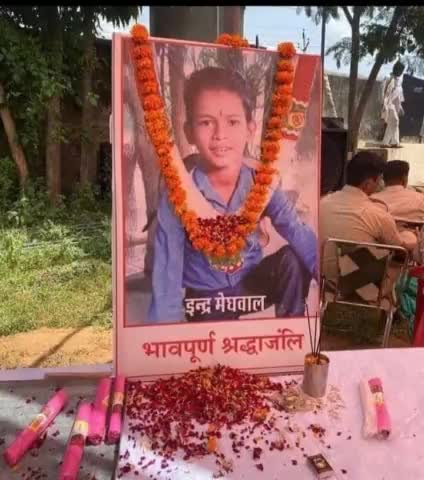 #राजस्थान के जालोर जिले में स्कूल के घड़े से पानी पीने के कारण एक जातिवादी गुंडा ने बहुत बुरी तरह से मारा पीटा था जाति का शिकार होकर जान गवाने वाले मासूम इंद्र_मेघवाल को प्रथम पुण्यतिथि पर कोटि कोटि नमन....... 🙏💐💐🌹🌹