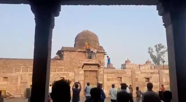 रायसेन शिव मंदिर में बना अयोध्या कार सेवकों ने फहराया भगव झंडा