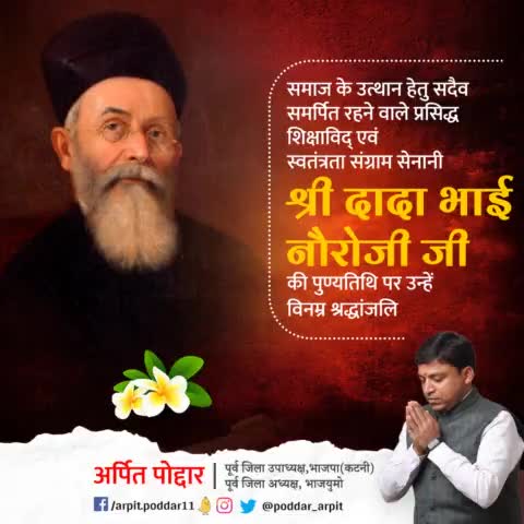 सुप्रसिद्ध शिक्षाविद् एवं महान समाज सुधारक "ग्रैंड ओल्ड मैन ऑफ इंडिया" के नाम से विख्यात, महान देशभक्त दादाभाई नौरोजी जी की पुण्यतिथि पर उन्हें शत्-शत् नमन🙏 #DadabhaiNaroji
