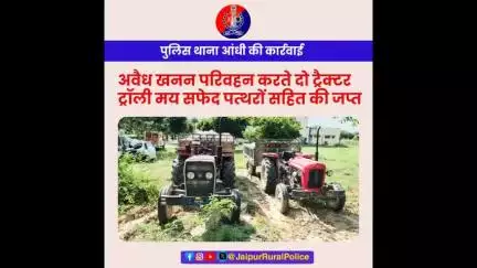 #Jaipur_Rural: पुलिस थाना आंधी की कार्रवाई। अवैध पत्थर खनन/परिवहन करते दो ट्रैक्टर ट्रॉली मय पत्थर सहित किए जप्त।