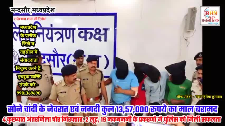 मंदसौर पुलिस ने किया चोर गिरोह का पर्दाफाश, 13 लाख 57 हजार का सामान किया बरामद