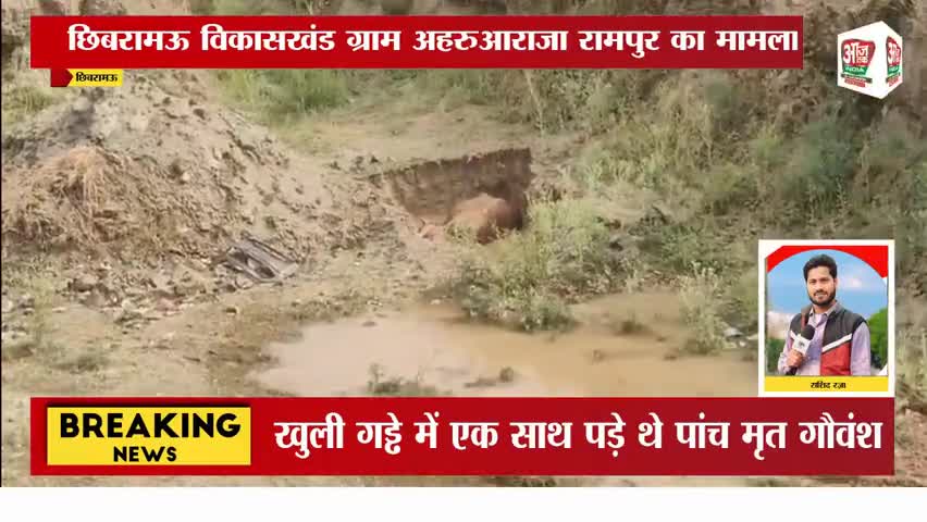 छिबरामऊ तहसील क्षेत्र के ग्राम अहरुआ राजा रामपुर में खुले गद्दे में पड़े मिले मृत गौवंश #Kannaujnews