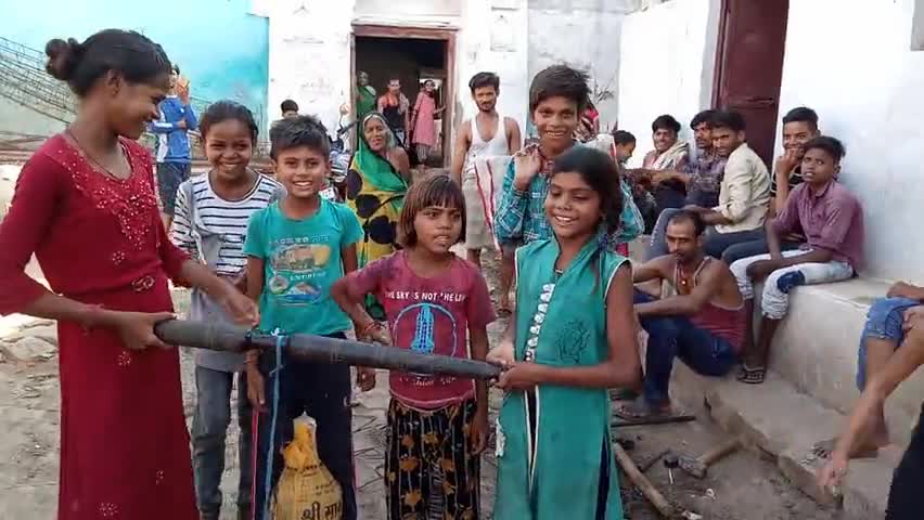 बारिश न होने से किसानो की बर्बाद हो रही फसल से दुखी बच्चो ने मेढक को मूसर मे बांध कर बारिश के लिए प्रार्थना की कैथोरा