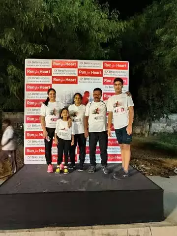 जयपुर में रन फॉर हार्ट मैराथन में अपने पोता हिमांक, पोती गर्विका, समधीन सबिता सिंह और बहु वैशाली सिंह के साथ दौड़ने को तैयार। जय हिन्द मित्र 🙏