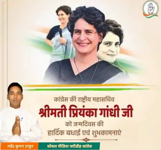 कांग्रेस की राष्ट्रीय महासचिव श्रीमती प्रियंका गांधी जी को जन्मदिन की हार्दिक बधाई एवं शुभकामनाएं