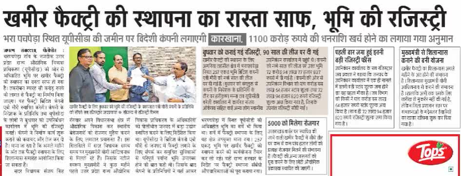 #पीलीभीत में खमीर फैक्ट्री की स्थापना का रास्ता साफ।भूमि की रजिस्ट्री कराई गई। 11 सौ करोड़ की आएगी लागत!!