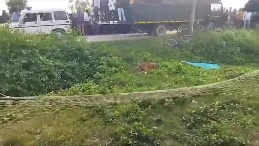 पूरनपुर: कलीनगर क्षेत्र मे वन विभाग ने रेस्क्यू अभियान में बाघ को किया ट्रेंकुलाइज