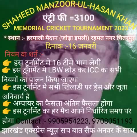 शुरू होने वाला 16 जनवरी से टूर्नामेंट शहीद मनजुरुल हसन खान मेमोरियल क्रिकेट टूर्नामेंट 2023