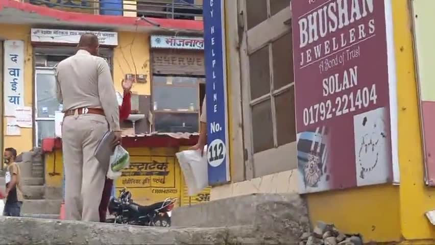 रेणुका: कर्फ्यू में ढील की तय अवधि समाप्त होने के बाद संगड़ाह में पुलिसकर्मियों ने बंद कराया बाजार