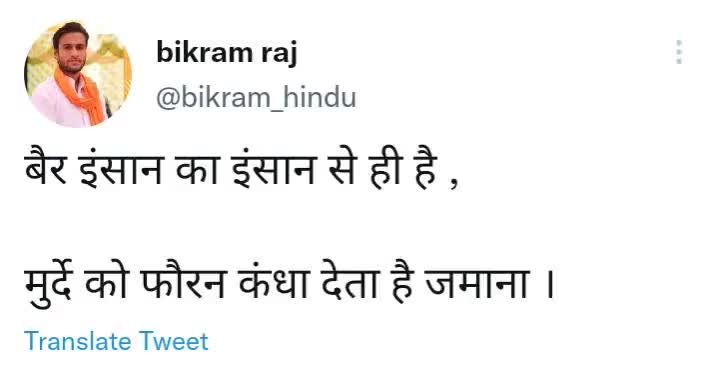 बैर इंसान का इंसान से ही है , मुर्दे को कंधा देता है जमाना ।