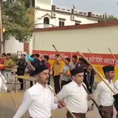 ‘नमस्ते सदा वत्सले मातृभूमे’ ‘राष्ट्रीय स्वयंसेवक संघ’ के पथ संचलन का पुष्प वर्षा कर स्वागत किया