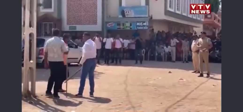 #gujrat में गरवा उत्सव के दौरान पत्थरबाजी करने वाले दोषी मुस्लिम युवकों को पुलिस ने जनता के सामने पीटा। #gujratmodel