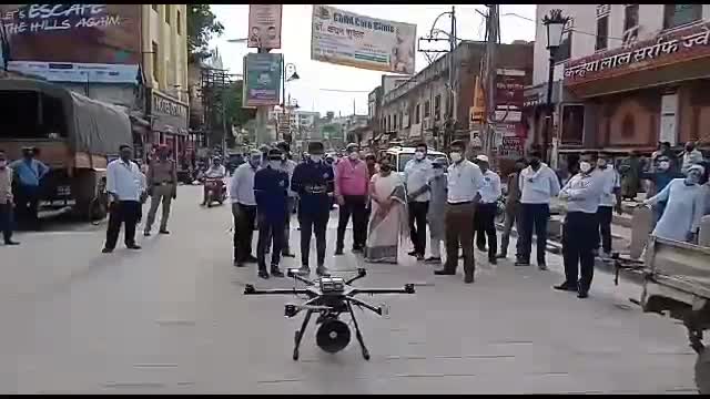 गोदौलिया क्षेत्र में गरुण ड्रोन से शुरू किया गया सैनेटाइजेशन