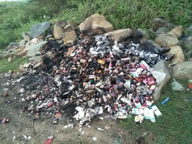 आदित्यपुर नदी के पास भारी मात्रा में दावा और कुछ दावा के बोतलो को खुले में नस्ट किया गया।