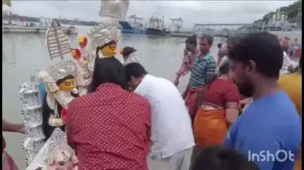 বাবুঘাটে আজ মহাষষ্ঠী থেকে দশমীর আনন্দধারা শেষ হলো এক আবেগঘন বিসর্জন অনুষ্ঠানে। আজ সকাল থেকেই গঙ্গার ঘাটে ঢল নামে ভক্ত ও দর্শনার্থীদের। হাজার হাজার মানুষের কণ্ঠে “বলো দুর্গা মাইকি জয়” ধ্বনিতে মুখরিত হয়ে ওঠে সমগ্র পরিবেশ। গত কয়েক দিন ধরে উৎসবের আনন্দে ভাসলেও আজকের দিনে চোখে জল এসে যায়। একদিকে বিদায়বেলার বেদনা, অন্যদিকে আগামী বছরের আশার সুরে ভক্তরা দেবীকে প্রণাম জানিয়ে বিদায় জানান।