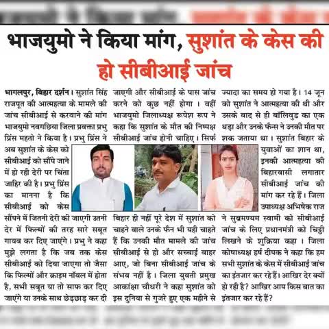 भाजयुमो नवगछिया ने किया सुशांत सिंह राजपूत केस की जांच सीबीआई से करवाने की मांग