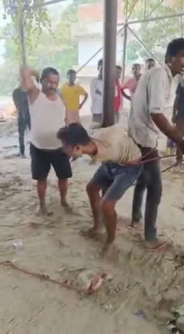 2 युवकों की चोरी के आरोप में खंभे से बांध लोहे के सरिया व ईंट,पत्थर से की जा रही है पिटाई,मामला मुजफ्फरपुर (बिहार) का।
