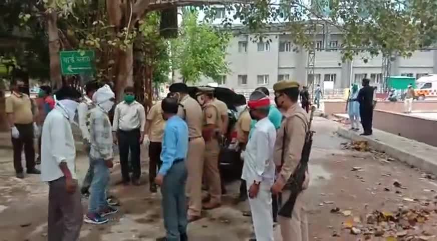 # लॉक डाउन से प्रभावित हुए मरीजों के तीमारदारों को सैफई मेडिकल हॉस्पिटल में भोजन के पैकेट वितरित करते हुए एसडीएम सैफई