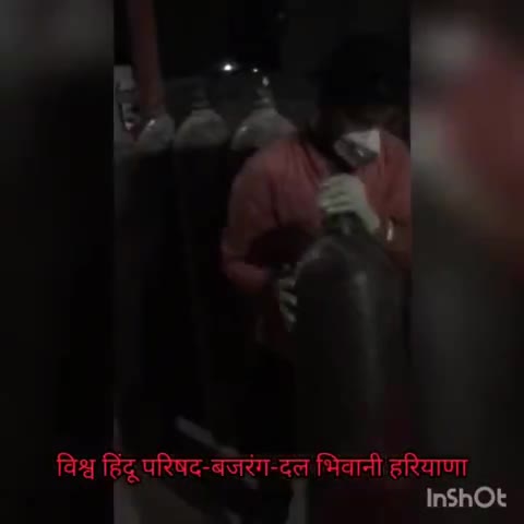 सिविल अस्पताल में रात के समय आक्सीजन सेवा कार्य करते हुये विहिप-बजरंगदल के कार्यकर्ता।