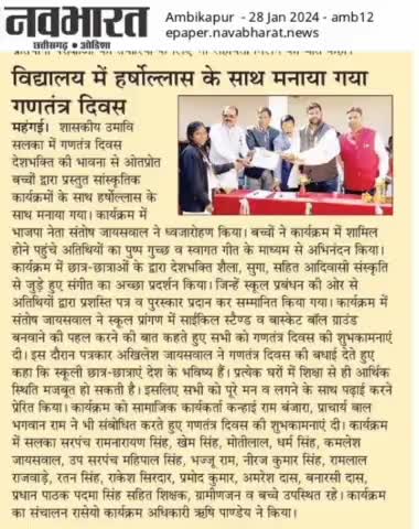 शा.उ.मा.विद्यालय-सलका में आयोजित गणतंत्र दिवस कार्यक्रम में अतिथि के रूप में हुआ शामिल।