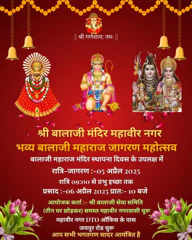 महावीर नगर चुरु बालाजी महाराज मंदिर स्थापना दिवस के उपलक्ष में जागरण और प्रसाद का सभी कॉलोनी वासी इनवाइट तीन घर छोड़ के