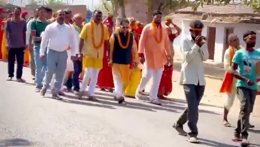 तिर्रा डुम्बर टोली स्थित देवी मंदिर के उद्घाटन के अवसर पर ग्रामीणों के साथ कलश यात्रा में शामिल हुआ
