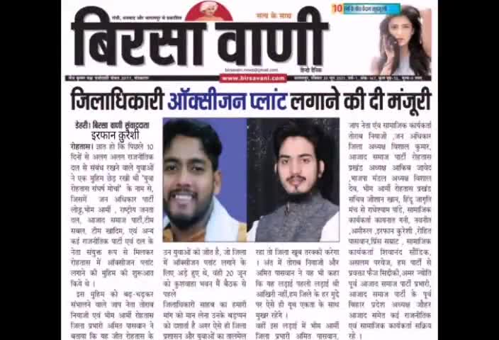 रोहतास के युवाओं का जिलाधिकारी को धन्यवाद: तोराब नियाज़ी