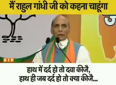 रक्षा मंत्री राजनाथ सिंह ने राहुल गांधी के शेर का जवाब शेर से दिया कहाँ हाथ में दर्द जो तो दवा कीजै